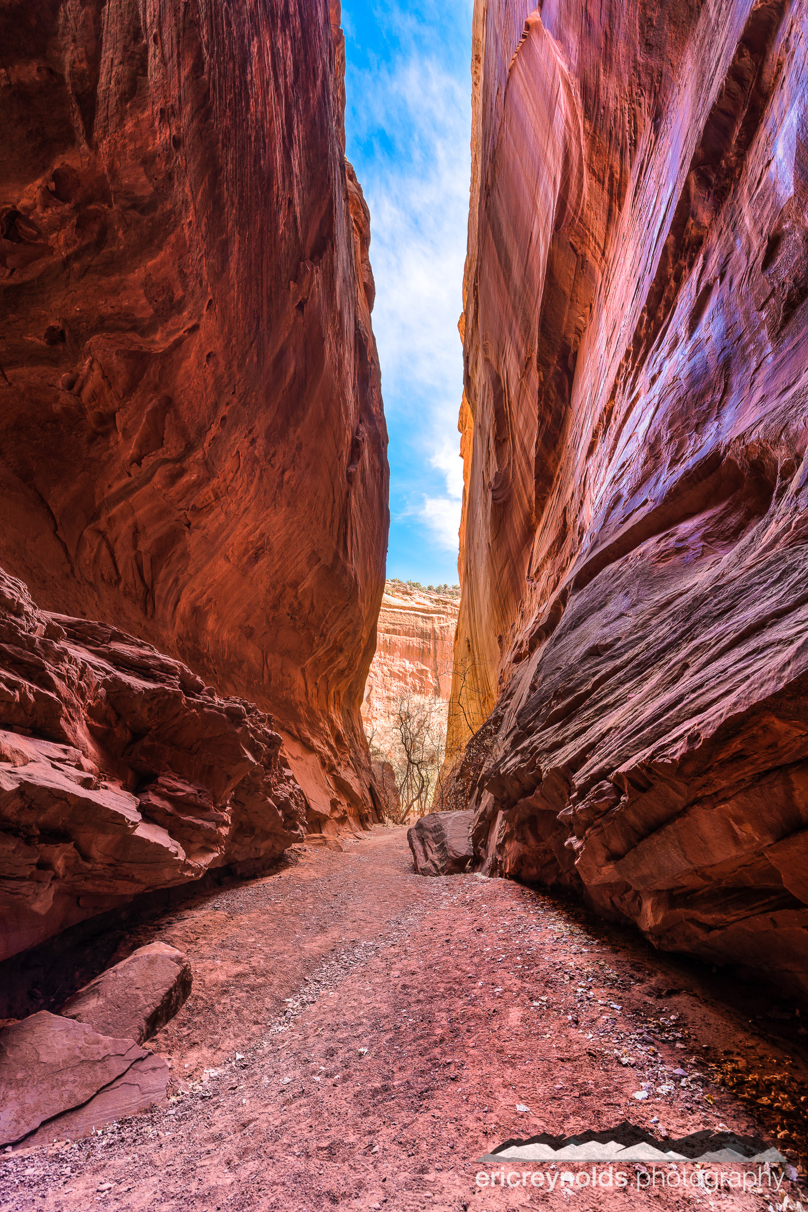 The purples and reds coming from the smooth sandstone walls really stand out against the bright blue sky. I hope you enjoy this shot as much as I do.